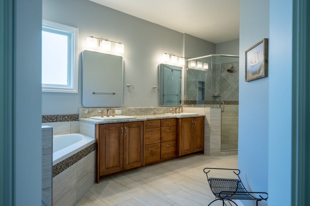 We’ve remodeled a lot of bathrooms in the Boise, Eagle, Meridian, and Garden City areas in the last 25 years. We love creatively reconfiguring the layout of spaces when that’s what the client desires, but something else we love is maintaining a layout and updating it in a way that makes the entire space feel larger. We recently wrapped up a master bathroom remodel for some awesome clients of ours in Meridian where we kept the same layout but remodeled the space to feel much more open, and the end result turned out beautifully. Although the overall layout remained the same, this bathroom renovation created a feeling of more space and better flow. For this month’s blog, we’re sharing some of the ways we achieved the look and feel of more space while maintaining the same square footage when designing this bathroom remodel.